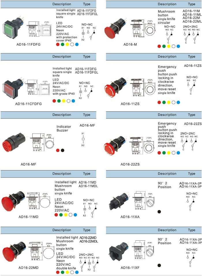 Indicators & PushbuttonsProduct name : Indicators & Pushbuttons Item : AD16 Details :AD16 Indicators & Pushbuttons, Pilot Lamp